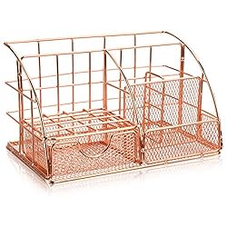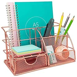 Rose Gold Desk Organiser with Drawer, Multi-Use Metal Desktop...