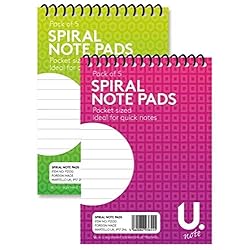 Pack of 5 Spiral Pocket Notepads – Ideal for Notes, Shopping...